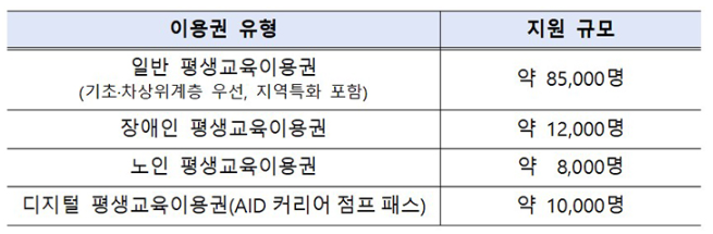 2025년 평생교육이용권은 다음과 같은 대상자를 중심으로 운영됩니다.