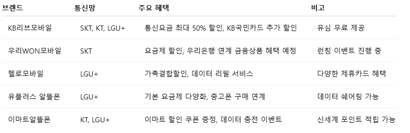 더 많은 알뜰폰 브랜드와 요금제 정보는 방송통신위원회 알뜰폰 이용자 가이드에서도 확인할 수 있습니다.